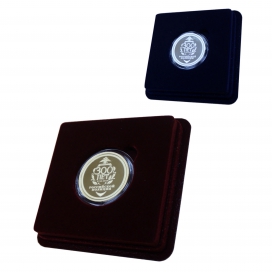 Монета укладывается во флокированный футляр бордового или темно-синего цвета, с прозрачной пластиковой крышкой.